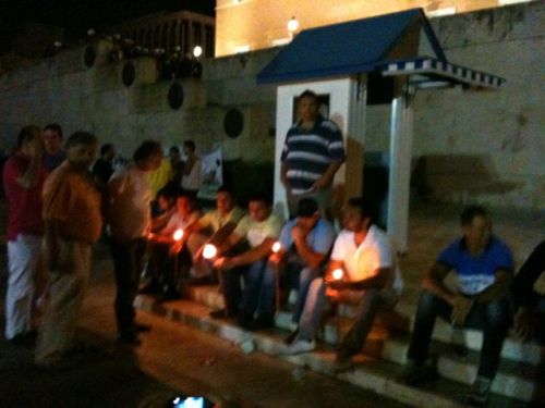 Κεριά μπροστά από το Μνημείο του Άγνωστου Στρατιώτη άναψαν οι μεταφορείς, οι οποίοι εξακολουθούν να διαμαρτύρονται ειρηνικά έξω από τη Βουλή. Οι ιδιοκτήτες φορτηγών και βυτιοφόρων παρακολουθούν από τη γιγαντοοθόνη τη συζήτηση στη Βουλή.
