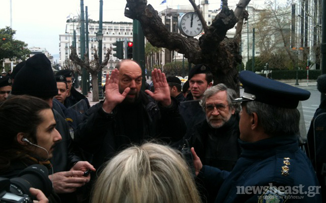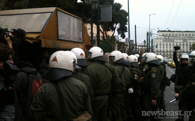 Τα ΜΑΤ έχουν πάρει εντολή να μην επιτρέψουν την πραγματοποίηση της συνέντευξης και απωθούν με τις ασπίδες τους τους παρευρισκόμενους. Κλειστή είναι αυτή τη στιγμή η άνοδος της Βασιλίσσης Σοφίας μπροστά από τη Βουλή.