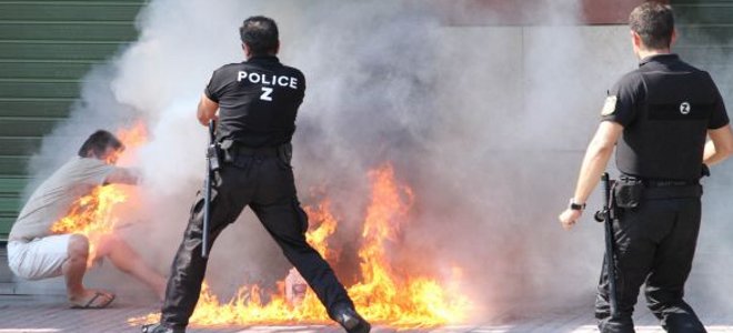 Ευτυχώς για τον ίδιο, όταν τελικά πραγματοποίησε την απειλή του, άνδρες της ομάδας Ζήτα επενέβησαν άμεσα και με πυροσβεστήρες έσβησαν τη φωτιά που είχε βάλει στον εαυτό του. Ο άνδρας μεταφέρθηκε στο νοσοκομείο, με εγκαύματα στο στήθος και την πλάτη.