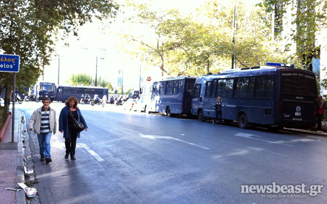 Η ΕΛ.ΑΣ. βρίσκεται σε 48ωρη επιφυλακή και χαρακτηριστικό είναι ότι κάθε 100-150 μέτρα από την Ομόνοια μέχρι το Σύνταγμα υπάρχει κλούβα των ΜΑΤ αλλά και άλλες δυνάμεις της ΕΛ.ΑΣ.Πανεπιστημίου και Ακαδημίας (οι δρόμοι που δε θα περάσουν οι προγραμματισμένες πορείες στην άνοδό τους προς το Σύνταγμα) είναι αστυνομοκρατούμενες ενώ γύρω στις 14 κλούβες βρίσκονται αυτή τη στιγμή στην πλαϊνή είσοδο της Βουλής!