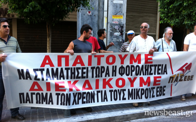 Πορεία διαμαρτυρίας προς το υπουργείο Οικονομικών πραγματοποιούν αυτή την ώρα επαγγελματοβιοτέχνες, μέλη της ΠΑΣΕΒΕ. Τα μέλη της Πανελλαδικής Αντιμονοπωλιακής Συσπείρωσης Επαγγελματιών Βιοτεχνών Εμπόρων θα παραδώσουν υπόμνημα προς τον υπουργό Οικονομικών, Γιάννη Στουρνάρα, ζητώντας «να καταργηθούν τα βάρβαρα φορολογικά μέτρα».