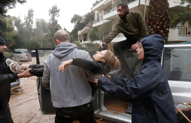 Την επιχείρηση διάσωσης για τον απεγκλωβισμό μιας γυναίκας που είχε παγιδευτεί μέσα στο αυτοκίνητό της, εξαιτίας των ορμητικών νερών και της λάσπης, κατέγραψε ο φωτογραφικός φακός.