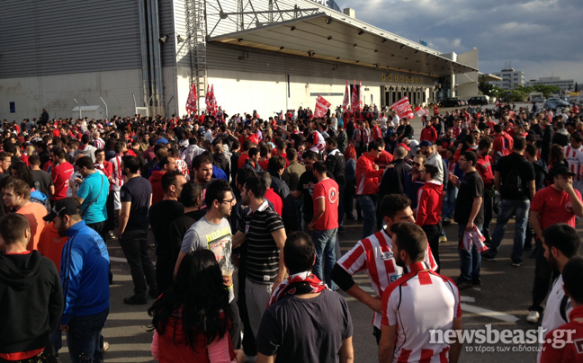 Το αεροδρόμιο Ελευθέριος Βενιζέλος έχουν κατακλύσει οι οπαδοί του Ολυμπιακού, περιμένοντας την άφιξη της πτήσης των Πρωταθλητών Ευρώπης, για να πανηγυρίσουν την κατάκτηση της Ευρωλίγκας.Χιλιάδες ερυθρόλευκοι τραγουδούν συνθήματα για τον «Βασιλιά της Ευρώπης» και προετοιμάζονται για υποδοχή ηρώων στους τροπαιούχους της Ευρώπης και για τη φιέστα που θα επακολουθήσει στο ΣΕΦ.. ΦΩΤΟ & ΒΙΝΤΕΟ>>
