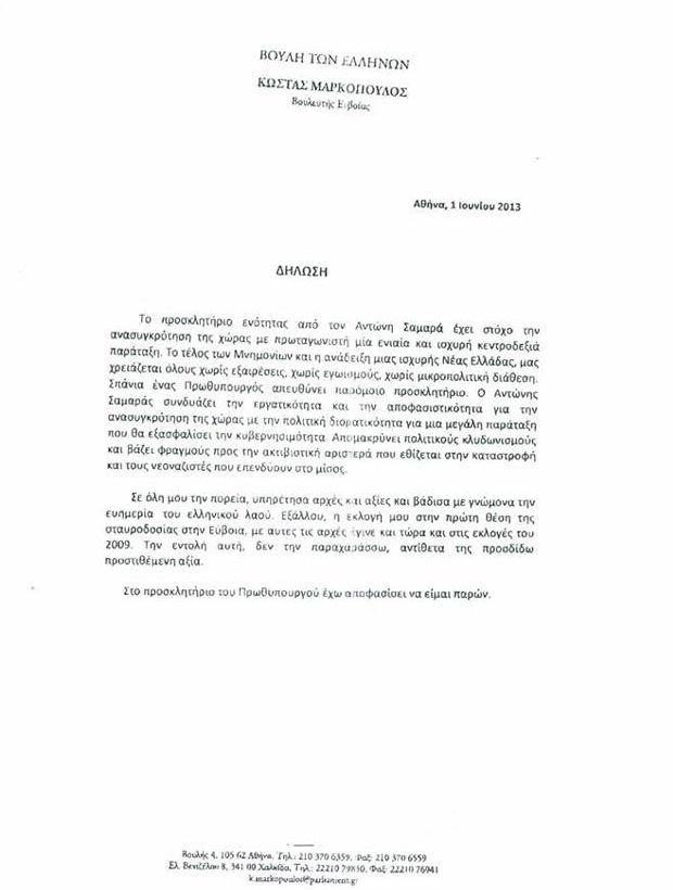 Διαβάστε αναλυτικά την επιστολή του στον Σαμαρά:>>