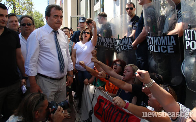 Στο Γενικό Λογιστήριο του Κράτους βρίσκονται οι απολυμένες καθαρίστριες του υπουργείου Οικονομικών. Οι καθαρίστριες διαμαρτύρονται για το μέτρο της διαθεσιμότητας και ζητούν να επιστρέψουν στη δουλειά τους.