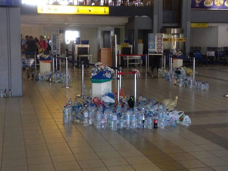 Πεταμένα πλαστικά μπουκάλια και σκουπίδια δίπλα στους ταξιδιώτες σε χώρους αναμονής και check in. Αυτή είναι η εικόνα που παρουσιάζει το αεροδρόμιο της Κέρκυρας τη στιγμή που η τουριστική περίοδος «φουντώνει» και το νησί αναμένεται για ακόμη μια φορά να βουλιάξει από επισκέπτες. Τις φωτογραφίες αυτές από την βασική πύλη εισόδου, το αεροδρόμιο «Ιωάννης Καποδίστριας», ανάρτησε στον λογαριασμό του στο facebook ο πρόεδρος των καταστηματαρχών της Παλαιάς Πόλης, Γιώργος Τσερεμής.... ΚΙ ΑΛΛΕΣ ΦΩΤΟ>>