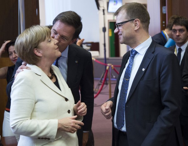Η Ανγκελα Μέρκελ είχε και τα... τυχερά της, καθώς πήρε ένα τρυφερό φιλί στο μάγουλο από τον πρωθυπουργό της Ολλανδίας, Μαρκ Ρούτε.