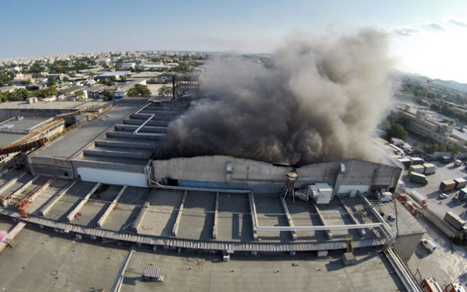 Υπό μερικό έλεγχο η φωτιά στο εργοστάσιο ΣΟΦΤΕΞ στο Αιγάλεω. ΒΙΝΤΕΟ
