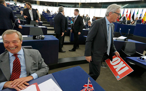 Με ένα κόκκινο καρτελάκι με το «Οχι» εθεάθη κάποια στιγμή και ο Ζαν Κλοντ Γιούνκερ, προφανώς αστειευόμενος...