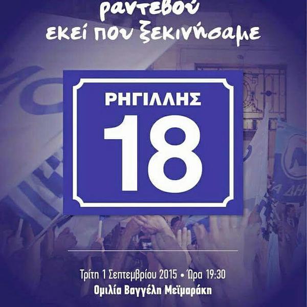 ΘΑ ΠΡΟΣΦΕΡΘΟΥΝ ΔΩΡΕΑΝ: ΠΑΞΙΜΑΔΑΚΙΑ, ΣΚΕΤΟΣ ΚΑΦΕΣ, ΠΑΞΙΜΑΔΑΚΙΑ ΚΑΙ ΚΟΝΙΑΚ. ΤΑ ΚΟΛΥΒΑ & ΚΕΡΑΚΙΑ ΠΡΟΣΦΟΡΑ ΤΗΣ ΜΙΖΑΡΙΣΜΕΝΗΣ ΜΑΦΙΟΖΙΚΗΣ ΦΑΜΙΛΙΑΣ ΜΗΤΣΟΤΑΚΗ. Στην ιστορική της έδρα επιστρέφει σήμερα η ΝΔ καθώς είναι προγραμματισμένη προεκλογική συγκέντρωση και ομιλία του Ευάγγελου Μεϊμαράκη στη Ρηγίλλης στις 19.00. Η κίνηση του προέδρου της ΝΔ εκτιμάται ως εξόχως συμβολική με στόχο την συσπείρωση της κομματικής βάσης και της επιστροφής των κεντροδεξιών ψηφοφόρων στο κόμμα. Ήδη, πρώην βουλευτές και υπουργοί αλλά και η ΟΝΝΕΔ καλούν σε μαζική συμμετοχή στη συγκέντρωση, ενώ ιδιαίτερο ενδιαφέρον έχει το αν θα δώσουν το παρών οι...δύο πρώην πρωθυπουργοί και πρόεδροι της ΝΔ, ΚώσταςΚαραμανλής και Αντώνης Σαμαράς και φυσικά ο απέθαντος αιωνόβιος επίτιμος -μπρρρρρ- όνομα ΔΕΝ λέμε, γνωστό βαμπίρ είναι, πέστε το εσεις ΑΝ τολμάτε.