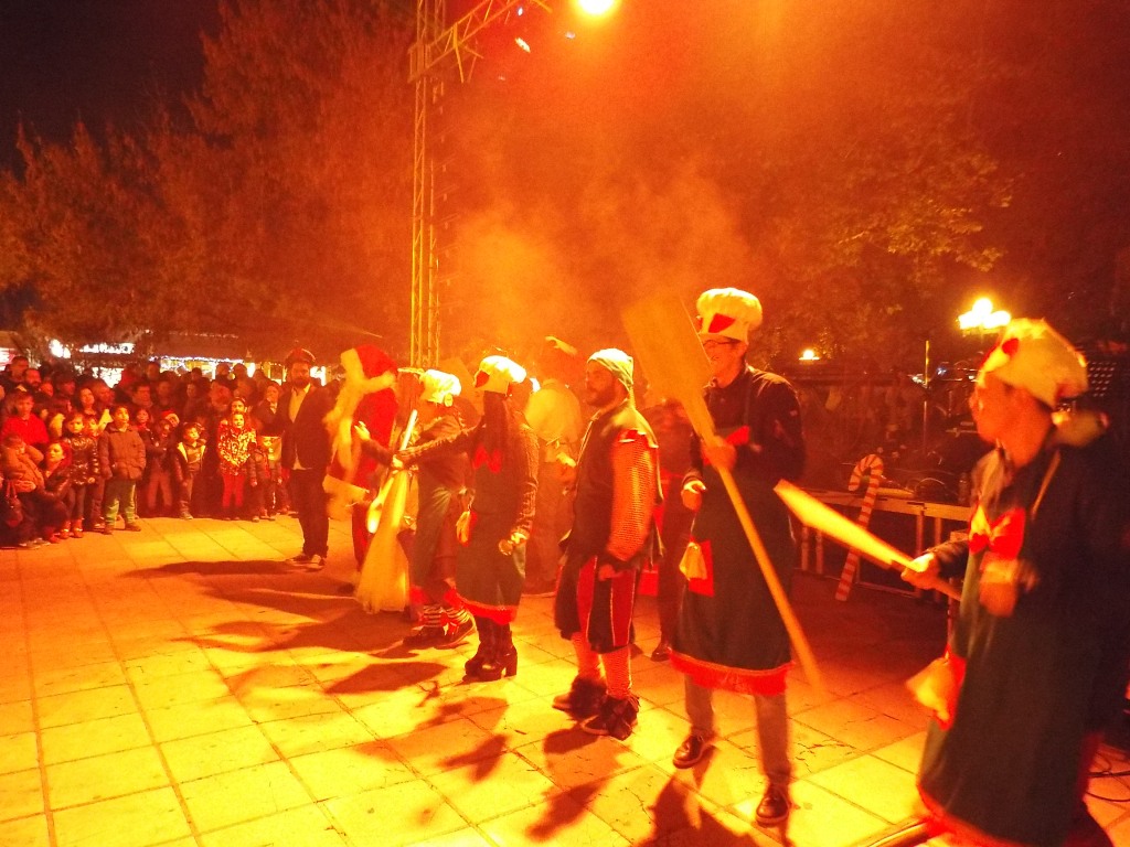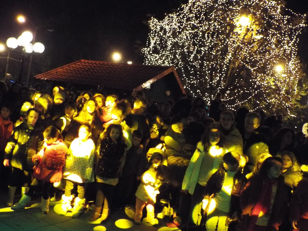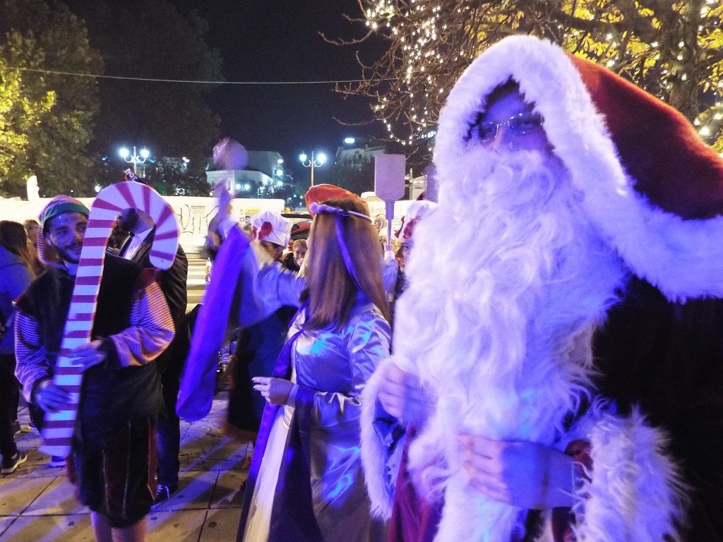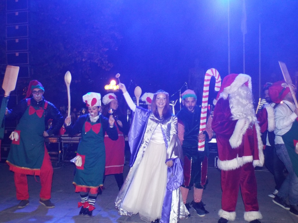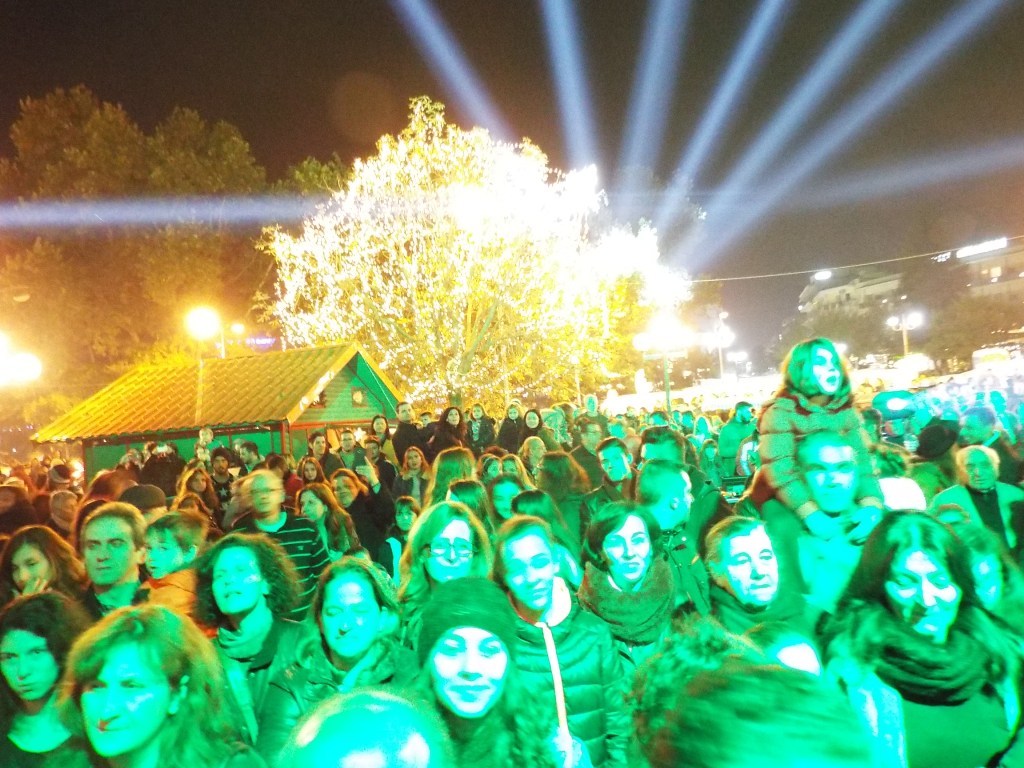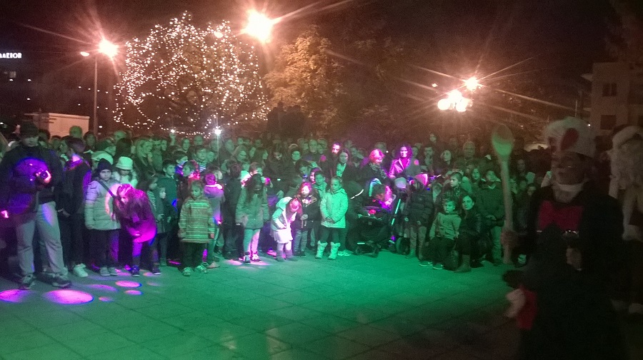 Αμέσως μετά, πάτησε το κουμπί και άναψαν τα λαμπιόνια του δέντρου, εν μέσω μουσικής και χορού, αλλά και βεγγαλικών που για μια ακόμη φορά, εντυπωσίασαν μικρούς και μεγάλους. Στην εκδήλωση ήταν εκεί και οι πρωταγωνιστές του Μύλου των Ξωτικών: Η νεράιδα Σταρένια, ο Αη Βασίλης, οι αλευροποντικούληδες, οι αλευροφουρναραίοι, οι οποίοι τόσο πριν την φωταγώγηση του δέντρου, όσο και μετά φρόντισαν να διασκεδάσουν και να παρασύρουν τους Τρικαλινούς σε χορό και τραγούδι. Στο πλαίσιο της βραδιάς, χόρεψαν οι Μαρία Ιτσιου και Σωκράτης Κατσάνος, που προσφέρθηκαν εθελοντικά με ειδικό πρόγραμμα, ενώ ακολούθησε ζωντανή μουσική από το τοπικό συγκρότημα των On Air.