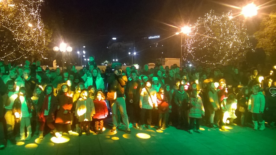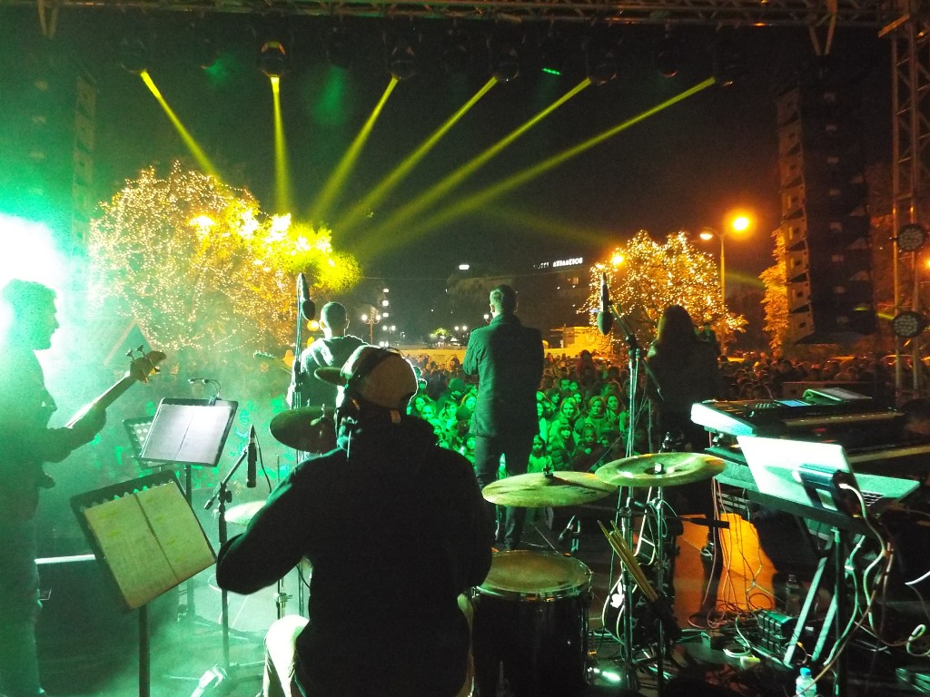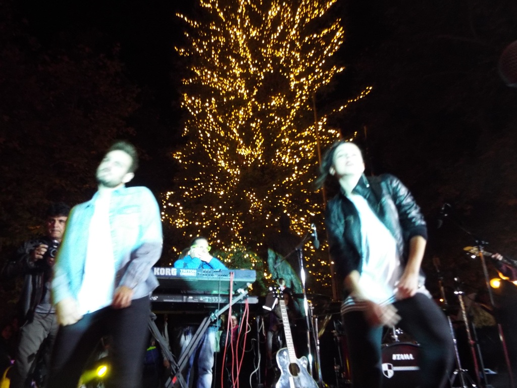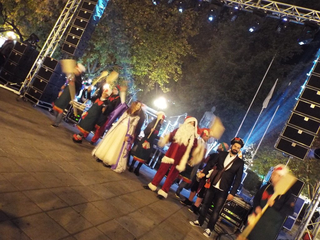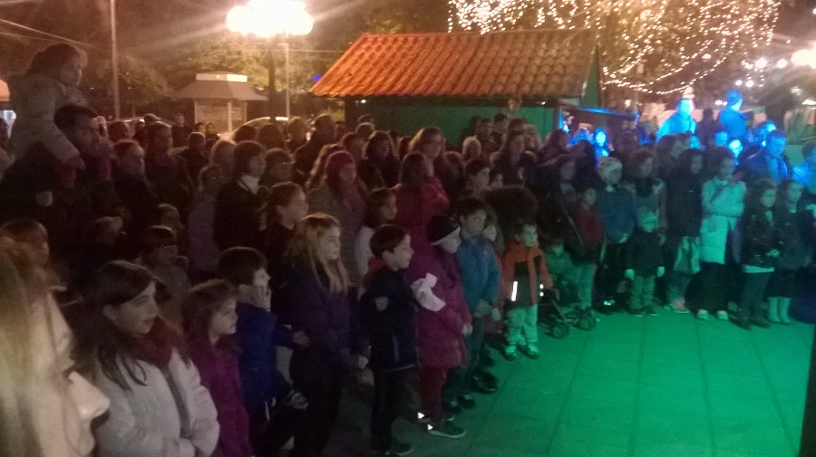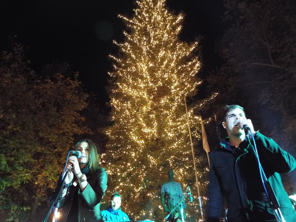 Αμέσως μετά, πάτησε το κουμπί και άναψαν τα λαμπιόνια του δέντρου, εν μέσω μουσικής και χορού, αλλά και βεγγαλικών που για μια ακόμη φορά, εντυπωσίασαν μικρούς και μεγάλους. Στην εκδήλωση ήταν εκεί και οι πρωταγωνιστές του Μύλου των Ξωτικών: Η νεράιδα Σταρένια, ο Αη Βασίλης, οι αλευροποντικούληδες, οι αλευροφουρναραίοι, οι οποίοι τόσο πριν την φωταγώγηση του δέντρου, όσο και μετά φρόντισαν να διασκεδάσουν και να παρασύρουν τους Τρικαλινούς σε χορό και τραγούδι. Στο πλαίσιο της βραδιάς, χόρεψαν οι Μαρία Ιτσιου και Σωκράτης Κατσάνος, που προσφέρθηκαν εθελοντικά με ειδικό πρόγραμμα, ενώ ακολούθησε ζωντανή μουσική από το τοπικό συγκρότημα των On Air.