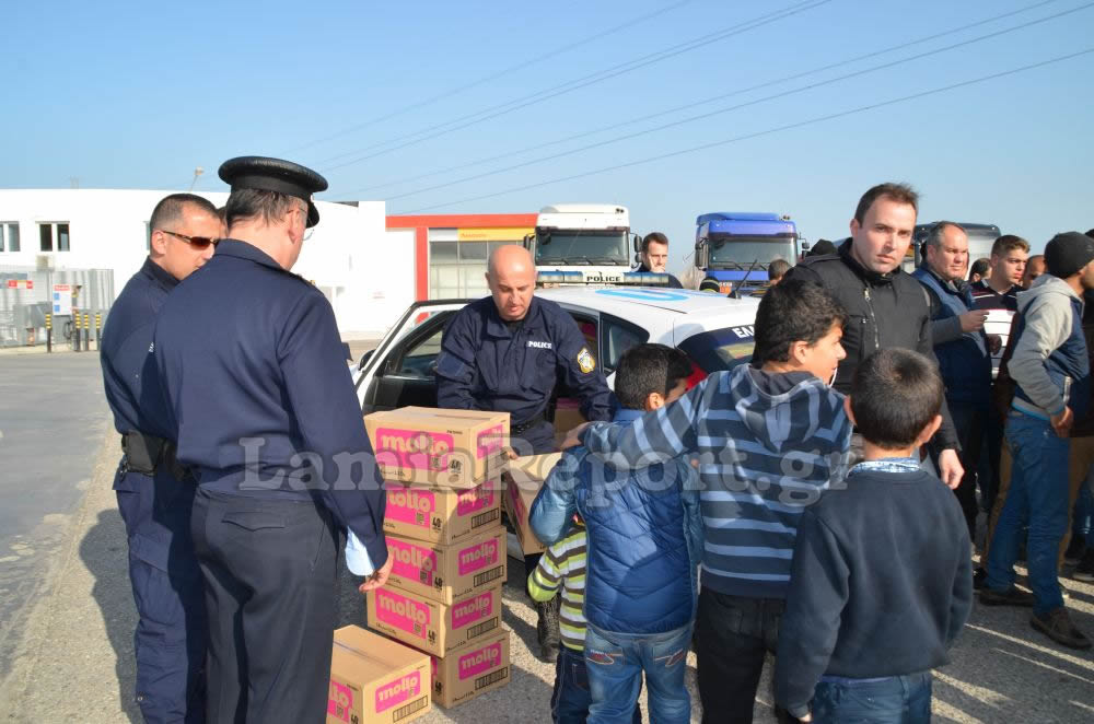 Επίσης αστυνομικοί της Διεύθυνσης Φθιώτιδας ζήτησαν και πήραν κρουασάν από την Chipita, καθώς επίσης και τρόφιμα από το κοινωνικό παντοπωλείο του Δήμου Λαμιέων και τα μοίρασαν στους πρόσφυγες, δείχνοντας έτσι το ανθρώπινο πρόσωπο της αστυνομίας.