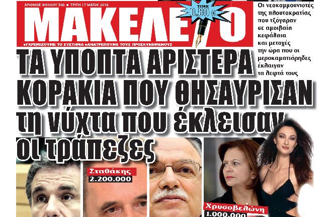 Όποιοι δεν βρίσκουν την εφημερίδα ΜΑΚΕΛΕΙΟ στα περίπτερα ή βλέπουν όλες τις εφημερίδες κρεμασμένες και όχι το ΜΑΚΕΛΕΙΟ, να μας τηλεφωνούν στο 6946 357733 ή να μας στέλνουν SMS (γραπτό μήνυμα), για να τακτοποιούμε κάποιους που επιδιώκουν το σαμποτάζ και τις παλιανθρωπιές.
