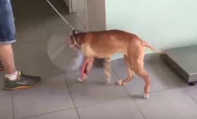 δημοσίευσε το Σάββατο στο facebook το βίντεο με τα πρώτα βήματα της σκυλίτσας μετά το χειρουργείο, που πραγματοποιήθηκε την Πέμπτη.