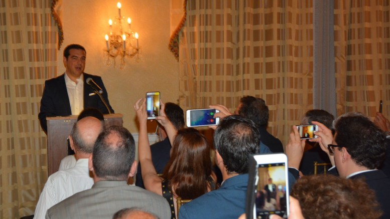 Θέμα της εκδήλωσης ήταν «η αρχειοθέτηση της Ελληνοαμερικανικής Εμπειρίας στην διάρκεια του 21ου αιώνα». Πράγματι και παρόλο που η εκδήλωση ξεκίνησε κανονικά, στην προγραμματισμένη της ώρα, κάποια στιγμή στην διάρκεια της ανακοινώθηκε ότι επρόκειτο να περάσει σε λίγο ο κ. Τσίπρας.