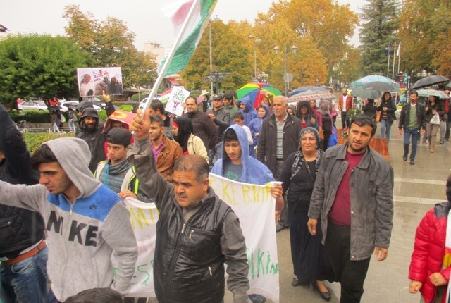 Οι λαθροπρόσφυγες με σημαίες και πλακάτ με συνθήματα εξέφρασαν την έντονη διαμαρτυρίας τους κατά του προέδρου της Τουρκίας Ταγίπ Ερντογάν και της τουρκικής κυβέρνησης για τις πρόσφατες συλλήψεις Κούρδων βουλευτών αλλά και για τη στάση τους απέναντι στο Κουρδικό και Συριακό ζήτημα.