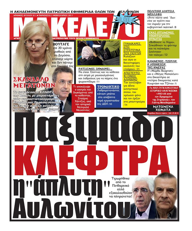Παξιμαδοκλέφτρα η «άπλυτη» Αυλωνίτου. Κοπανατζού κ’ αργόμισθη. Φυγαδεύτηκε από τους έτερους «άπλυτους» Κουράκη και Παρασκευόπουλο από τη Βουλή για να γλυτώσει την ψειρού.ΣΤΟ ΜΑΚΕΛΕΙΟ ΤΗΣ ΠΑΡΑΣΚΕΥΗΣ....