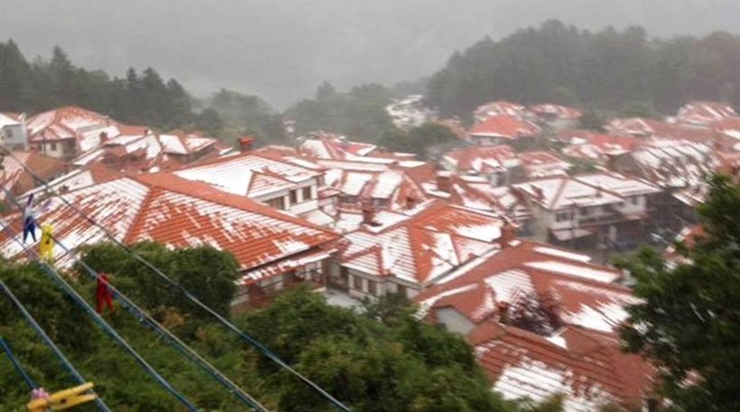 Οι εικόνες θυμίζουν τις χειρότερες ημέρες του χειμώνα, καθώς τα πάντα έγιναν λευκά. Οι ζημιές που προκλήθηκαν, στα αμπέλια και σε κάθε είδους καλλιέργεια, είναι ανυπολόγιστες.