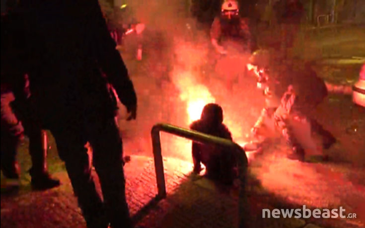 Σκληρό βίντεο: Η στιγμή που φωτοβολίδα καρφώνεται στο πόδι γυναίκας στα Εξάρχεια