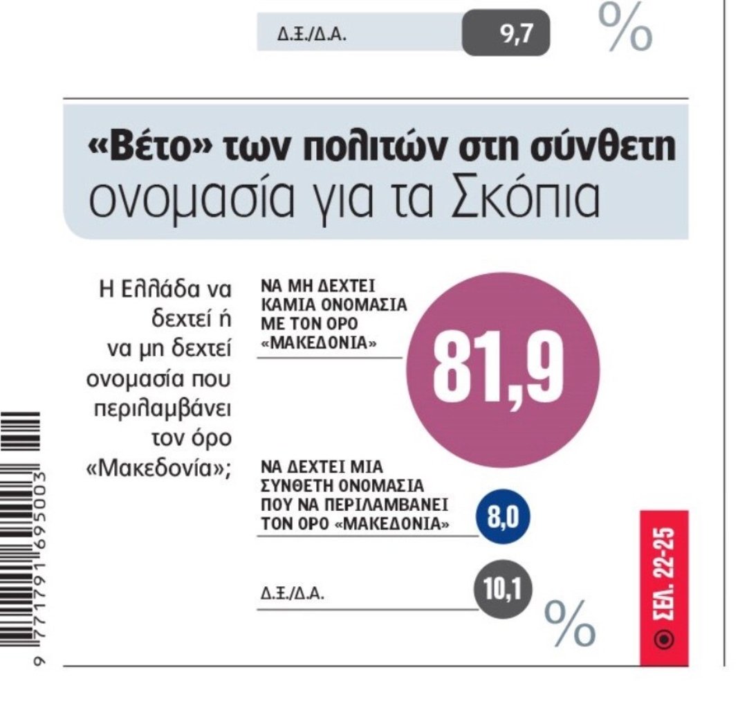 Ὅλοι αὐτοὶ (81,9%) λέγουν ΟΧΙ στὸ ὄνομα Μκακεδονία διὰ τὴν Βαρδάρσκαν (Σκόπια εἶναι ὄνομα πόλεως)ἐνῶ ψηφίζουν τὰ κόμματα τὰ ὁποῖα λέγουν ΝΑΙ εἰς τὴν παραχώρησιν καὶ δὲν ψηφίζουν τὸ κόμμα τὸ ὁποῖον λέγει ΟΧΙ, δηλαδὴ συμφωνεῖ μὲ αὐτοὺς.