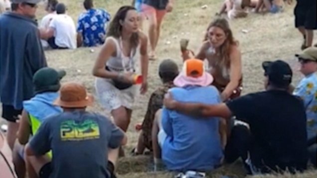 Μια νεαρή κοπέλα από την Νέα Ζηλανδία αποφάσισε να εμφανιστεί τόπλες κατά την διάρκεια του φεστιβάλ Rhythm & Vines στο Gisborne, καλύπτοντας το στήθος της μόνο με χρυσόσκονη! Εκεί, ένας άντρας βρίσκει ευκαιρία, την πλησιάζει, από πίσω και ενώ περπατά παρέα με μια φίλη της, τη χουφτώνει... προκαλώντας την οργισμένη αντίδρασή της.Οι κοπέλες τον πλησιάζουν, η φίλη του ρίχνει στο πρόσωπο το ποτό, ενώ η ημίγυμνη 20χρονη τον χτυπά. Η Madeline Anello-Kitzmiller, 20 ετών, φαίνεται στο βίντεο να περπατά φορώντας… εκτός από τη χρυσόσκονη, μία μικροσκοπική φούστα, που καλύπτει τα απολύτως απαραίτητα.
