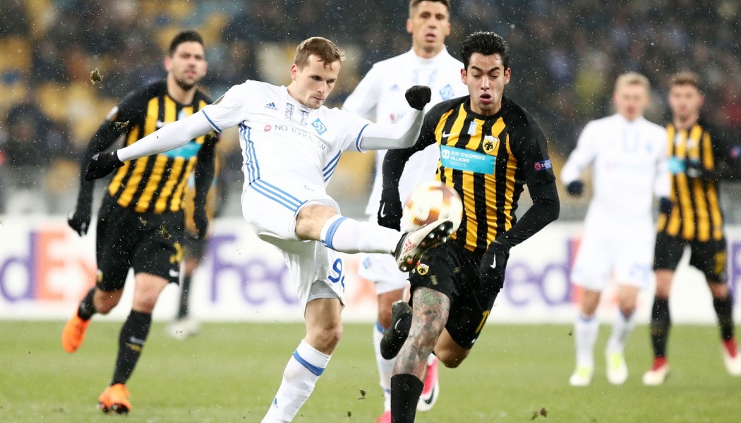 ΞΕΚΑΘΑΡΑ Η ΑΕΚ δεν επηρεάστηκε από τις ακραίες καρικές συνθηκες. Έβαλε κάτω τη μπάλα, άσκησε πίεση ψηλά στην άμυνα της Ντιναμό και προσπαθώντας να εκμεταλλευτεί το ταλέντο των παικτών της, προσπάθησε με γρήγορες μπαλιές να δημιουργήσει κινδύνους στους γηπεδούχους, οι οποίοι τη γλίτωσαν από τύχη στο πρώτο ημίχρονο. Η Ένωση έφτιαξε 3 κλασικές ευκαιρίες, τις οποίες όμως δεν κατάφερε να αξιοποιήσει απέναντι σε μία ομάδα που μόνο φόβητρο δεν φάνταζε. Στο δεύτερο μέρος η εξέλιξη του παιχνιδιού ήταν συγκλονιστική. Η ευκαιρία που έχασε ο Μασούντ ήταν καταλυτική, όπως και η επέμβαση του Μπακάκη πάνω στη γραμμή, όταν ο Μοράες έπιασε στον ύπνο την κιτρινόμαυρη άμυνα. Στην ουσία η τελευταία ευκαιρία που σημείωσε η ΑΕΚ, πριν χάσει δύο φοβερές στιγμές η ουκρανική ομάδα, ήταν στην εκτέλεση φάουλ του Λάζαρου, στο 63′. Οι αλλαγές των Κλωναρίδη, Γιακουμάκη, Αϊντάρεβιτς δεν βοήθησαν τόσο την Ένωση.