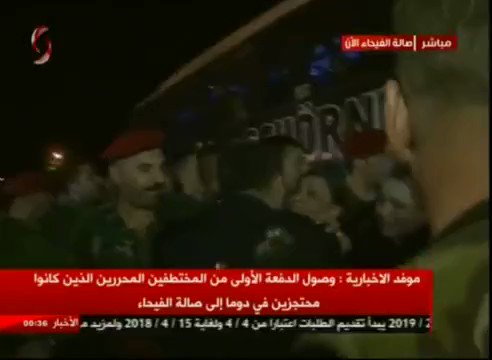 Στιγμές συγκλονιστικές στιγμές μεγάλης νίκης. Η Συρία δεν πρόκειται να κοιμηθεί απόψε. Ζει συγκλονιστικές στιγμές από την απελευθέρωση 5 με 6.000 ατόμων που απήχθηκαν και κρατούνταν όμηροι από την τρομοκρατική οργάνωση Jaysh al Islam. H υποδοχή τους γίνεται στο Στάδιο Faiha όπου τους ανέμεναν οι συγγενείς τους....