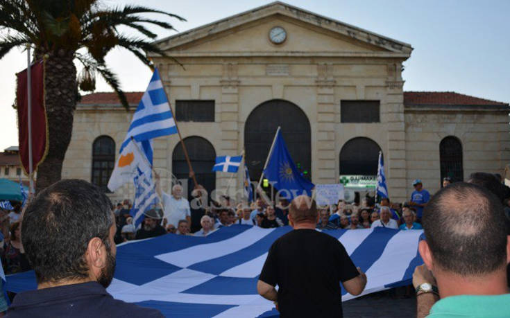 Ένταση και επεισόδια σημειώθηκαν το απόγευμα στην πλατεία της δημοτικής αγοράς των Χανίων λίγο πριν την έναρξη συγκέντρωσης για τη Μακεδονία μας.