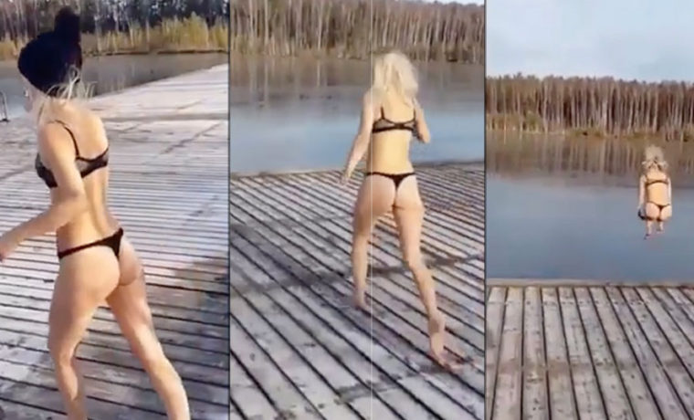 Πολλοί άνθρωποι ειδικά στο εξωτερικό τους αρέσει να βάζουν τα μαγιό τους και να πηδούν μέσα σε λίμνες και ποτάμια κατά την διάρκεια του χειμώνα.Έτσι και μια ξανθιά γυναίκα αποφάσισε να βιντεοσκοπήσει την προσπάθεια της να κάνει βουτιά μέσα σε μια...