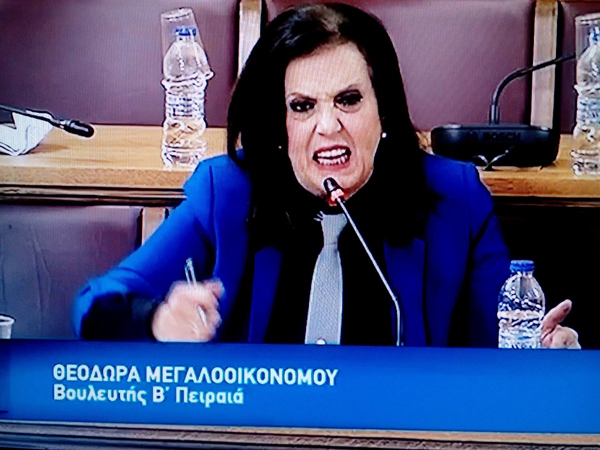 η βουλευτής Β΄ Πειραιά, η οποία είπε να ξεσπαθώσει και να του τα ψάλει ένα χεράκι... Μόνο που τα ’χασε, αφού άλλα ήθελε να πει και άλλα είπε στο τέλος, προκαλώντας μειδιάματα. Ακόμη και ο σύντομος διάλογος που αναπτύχθηκε μεταξύ τους ήταν για γέλια, με τον πρόεδρο της Ενωσης Κεντρώων να της λέει «στον ΣΥΡΙΖΑ σάς έκαναν αντιπρόεδρο; Ασε μας, ντροπή σου. Αχαριστία! Να χαίρεστε την 151η βουλευτή σας», και εκείνη να του απαντά ειρωνικά: «Με χαίρονται». Πω πω ντροπή, κυρία Μεγαλοοικονόμου μας, δεν μιλάνε έτσι ποτέ στον ευεργέτη τους, διότι κακά τα ψέματα αν δεν ήταν ο πρόεδρος Λεβέντης να σας δώσει θέση στο κόμμα του, τη Βουλή με τα κιάλια θα τη βλέπατε ακόμα από τον Πειραιά... Η αλήθεια να λέγεται. Η ίδια λίγο αργότερα προσπάθησε διά μικροφώνου να απαντήσει στον Βασίλη Λεβέντη, διαβάζοντας ένα δελτίο Τύπου με τους λόγους που την οδήγησαν στην ανεξαρτητοποίηση, ωστόσο τα έκανε μαντάρα, αφού έχασε τη σειρά των λέξεων, λέγοντας αυθόρμητα: «Αχ! Τώρα το έχασα»... Δεν πειράζει... Και εμείς τα χάσαμε μαζί σας