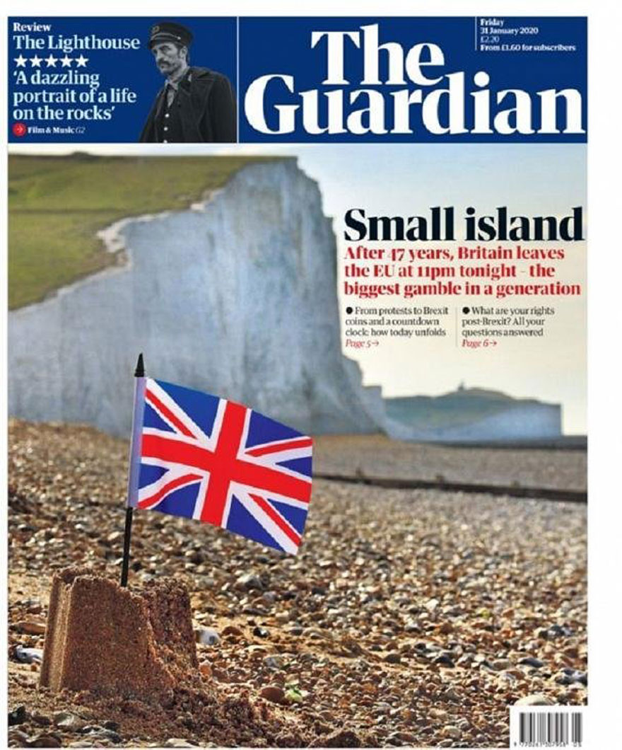 Η αριστερή εφημερίδα The Guardian, που έχει εκφράσει την προτίμησή της για παραμονή στην ΕΕ, έχει τίτλο «Το μικρό νησί», ενώ χαρακτηρίζει το Brexit «το μεγαλύτερο στοίχημα εδώ και μία γενιά».