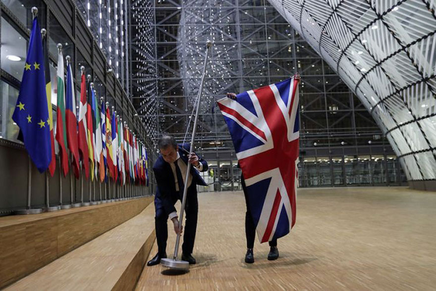 Οι ευρωπαϊκοί θεσμοί άρχισαν την υποστολή της βρετανικής σημαίας από τον ιστό της, ξεκινώντας από το κτίριο του Ευρωπαϊκού Συμβουλίου στις Βρυξέλλες.