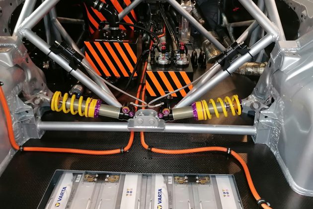 Το τελευταίο μάλιστα είναι ενισχυμένο και μεταφέρει την τόση δύναμη και στους τέσσερις τροχούς, μέσω της 4κίνησης που τοποθετήθηκε ειδικά για την περίσταση. Το «πάτημα» στο δρόμο εξασφαλίζεται από μια ειδικά μελετημένη, για τα δεδομένα της ιπποδύναμης, ανάρτησης, τα φρένα είναι πανίσχυρα, ενώ υπάρχει και roll cage για την περαιτέρω προστασία των επιβαινόντων, αλλά και την ενίσχυση της ακαμψίας του αμαξώματος.