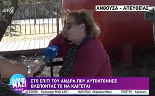 Συγκλονισμένη είναι η σύζυγος του ηλικιωμένου που πήρε την απόφαση να βάλει τέλος στη ζωή του στην Ανθούσα όταν είδε το σπίτι του στην Ανθούσα να περικυκλώνεται για ακόμη μία φορά από τις φλόγες. «Δεν παρουσιάστηκε καμία Πυροσβεστική» είπε η σύζυγος του ηλικιωμένου στον ΑΝΤ1 μην μπορώντας να κρύψει τον πόνο της...