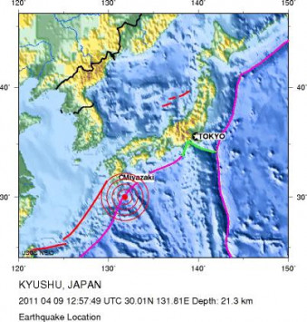 Σύμφωνα με το Γεωδυναμικό Ινστιτούτο των ΗΠΑ ο σεισμός είχε επίκεντρο 133 χιλιόμετρα νοτιοανατολικά της Kagoshima.