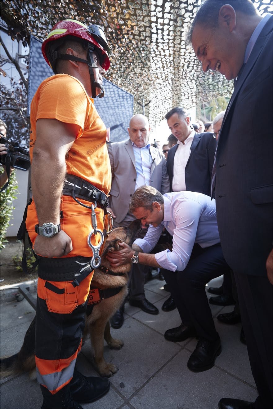 Την προηγούμενη ημέρα μάλιστα κατά τη διάρκεια της επίσκεψης του πρωθυπουργού στα περίπτερα της Εκθεσης, είχε και δύο… φιλικές συναντήσεις. Η πρώτη με σκύλο των Ενόπλων Δυνάμεων, τον οποίο ο Κυριάκος Μητσοτάκης έσκυψε και χάιδεψε, αλλά και με σκύλο της ΕΜΑΚ, ο οποίος έδειξε να απολαμβάνει το χάδι του πρωθυπουργού, αφού του το ανταπέδωσε με ένα φιλί.