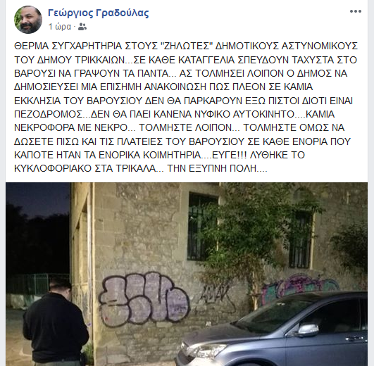 Σύμφωνα με την ιστοσελίδα trikalavoice, ο πάτερ είχε σταθμεύσει το αυτοκίνητό του στον περίβολο του ναού και του έκοψαν κλήση έπειτα από ειδοποίηση που δέχθηκαν από περίοικο. Δείτε την ανάρτηση του πάτερ στον λογαριασμό του στο Facebook: