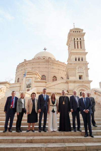 Στην επίσκεψη συμμετείχαν μεταξύ άλλων ο Υπουργός Εξωτερικών Νίκος Δένδιας, ο Υπουργός Περιβάλλοντος και Ενέργειας Κωστής Χατζηδάκης και η Υπουργός Πολιτισμού, Λίνα Μενδώνη.Η Ιερά Μονή και ο Ναός του Αγίου Γεωργίου είναι από τα σπουδαιότερα μνημεία του χριστιανισμού στο Παλαιό Κάιρο και αποκαταστάθηκαν με τη φροντίδα του Πατριάρχη Αλεξανδρείας Θεόδωρου του Β’ και με την αποκλειστική χορηγία της Μαρίνας και του Αθανάσιου Μαρτίνου, οι οποίοι ήταν παρόντες στη σημερινή επίσκεψη.