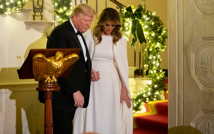 Περήφανος στο πλευρό της ο Ντόναλντ Τραμπ, τη συνεχάρη δημόσια για τη διακόσμηση: «Θέλω να συγχαρώ τη Μελάνια, έκανε καταπληκτική δουλειά με τις διακοσμήσεις», ανέφερε χαρακτηριστικά.