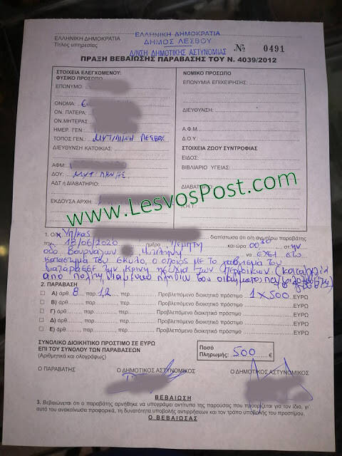 Πρόστιμο ύψους 500 ευρώ καλείται να πληρώσει ένας κάτοικος της Μυτιλήνης, επειδή ο σκύλος του γάβγιζε και ενοχλούσε! Ο άνδρας είχε τον σκύλο μέσα στο κατάστημα σε ειδικό χώρο σε κεντρική οδό της Μυτιλήνης....