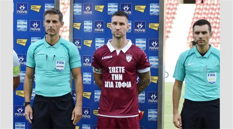 Το μήνυμα για την Αγία Σοφία στη φανέλα της Λάρισας στο ματς με την Ξάνθη για την 7η αγωνιστική των play out της Super League ήταν απόλυτα ξεκάθαρο: «ΣΩΣΤΕ ΤΗΝ ΑΓΙΑ ΣΟΦΙΑ»...
