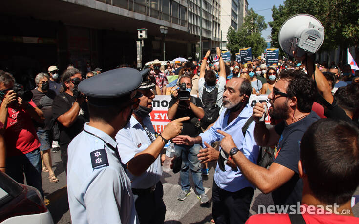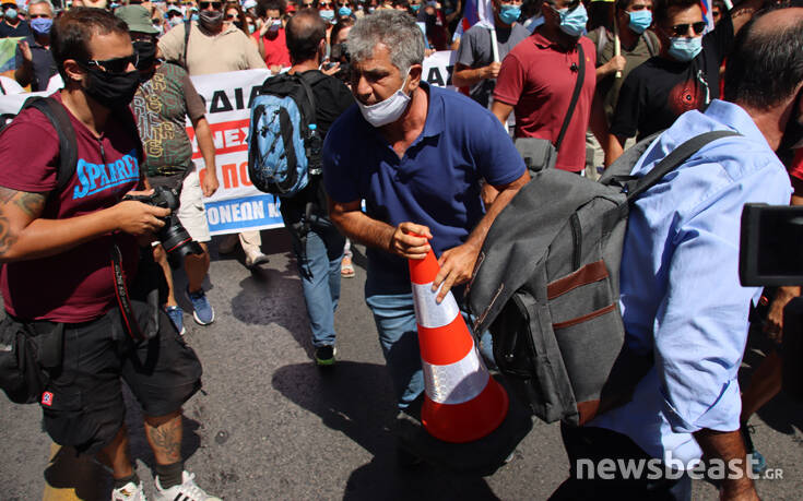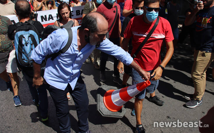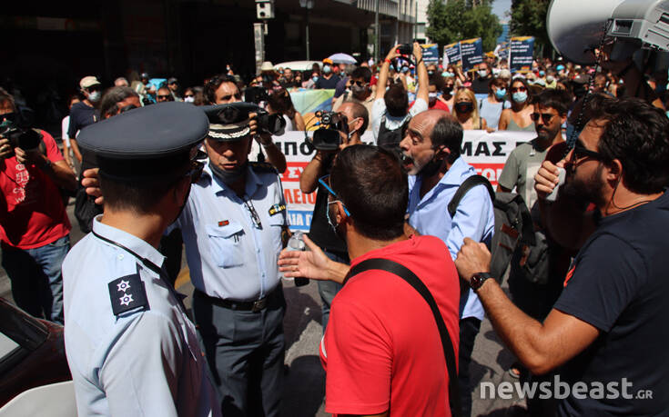 Κάποιοι τους κλώτσησαν για να περάσουν, ενώ ένας εκπαιδευτικός, πήγε μπροστά στις αστυνομικές δυνάμεις, χωρίς να φοράει μάσκα, φωνάζοντας: «Είναι τεράστια η πολιτική ευθύνη της κυβέρνησης, μας κλείνουν τον δρόμο. Ανοίξτε μας το δρόμο, κλείνετε το δρόμο στη ζωή των παιδιών μας. Είναι αίσχος αυτό που κάνετε. Είναι αίσχος αυτό που κάνει η κυβέρνηση».