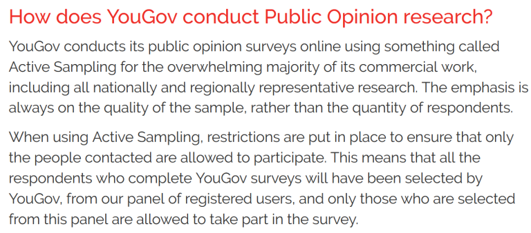 Η δημοσκόπηση διεξήχθη με δείγμα μόλις 1.696 ενηλίκων στο Ηνωμένο Βασίλειο και όλοι τους ελέγχθηκαν προσεκτικά εκ των προτέρων για να διασφαλιστεί ότι η YouGov θα λάβει τα αποτελέσματα που ήθελε, όπως ακριβώς γίνεται με κάθε δημοσκόπηση που διενεργεί η YouGov.