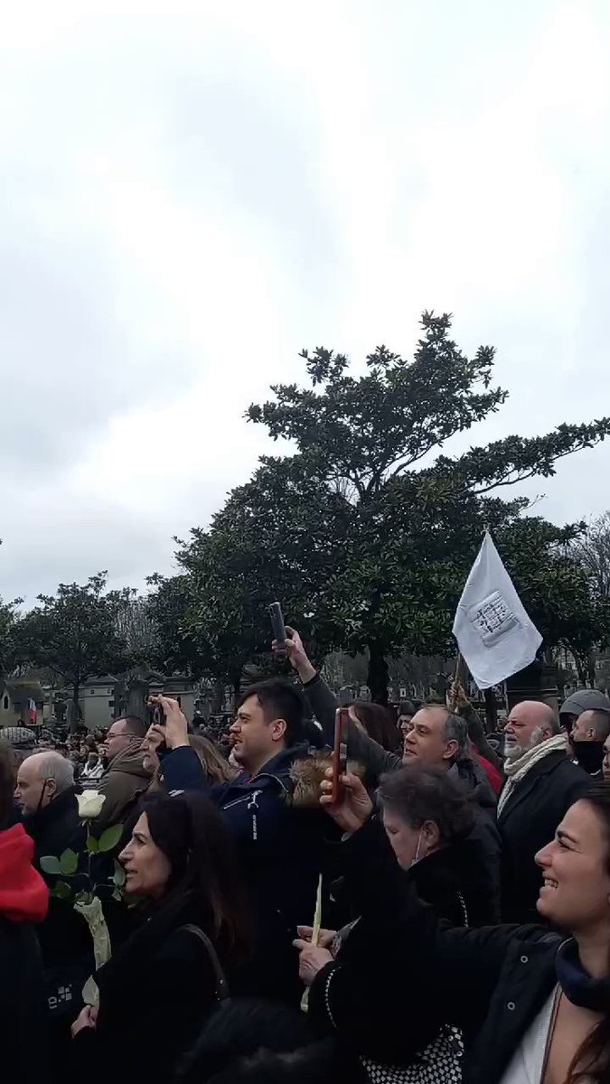 Ηχηρή ήταν η απουσία του καθεστώτος Μακρόν αλλά πιο ηχηρό ήταν το τελευταίο χειροκρότημα χιλιάδων Γάλλων αντιφρονούντων..Κανένας εκπρόσωπος του καθεστώτος που τον δίωξε δεν παραβρέθηκε σήμερα στην ταφή του 2 βδομάδες μετά το θάνατο του που έγινε στο κοιμητήριο ” cimetière du Père Lachaise”..Πολλά μέλη της ιατρικής κοινότητας ήταν παρόντα. Το πλήθος κραύγαζε ρυθμικά ”Μontagnier gratitude” ” ευγνωμοσύνη στον Μοντανιέ”.